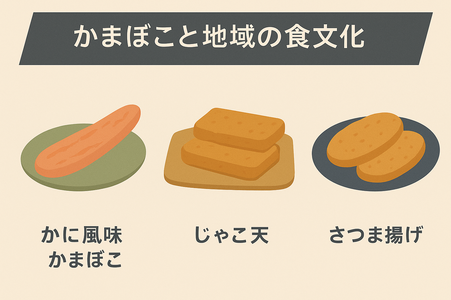地域ごとに発展してきたかまぼこは、その土地の自然環境や文化と深く結びついています。なかでも代表的な三つを見てみましょう。